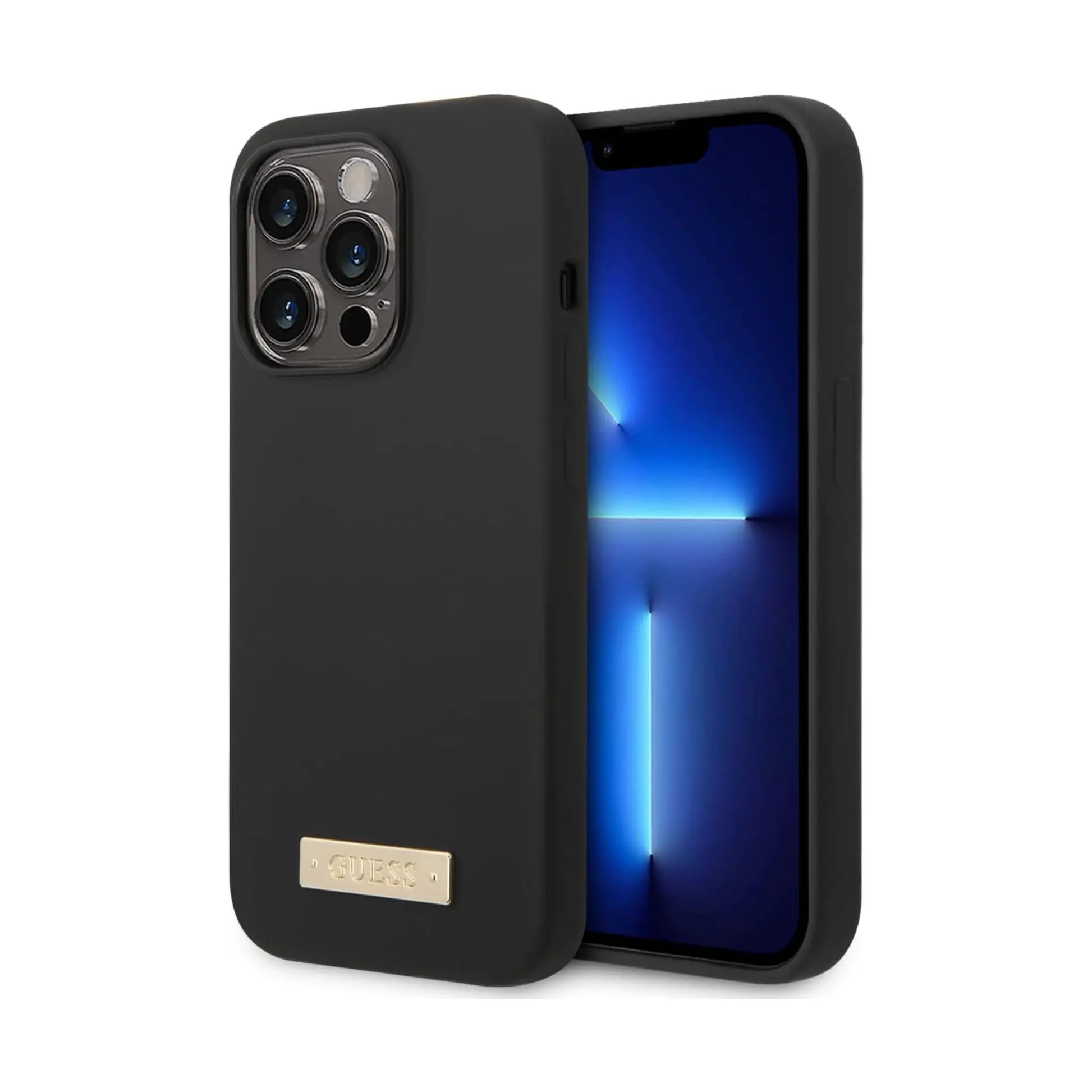 Guess Hülle Silicone Plaque MagSafe Schwarz - iPhone 14 Pro