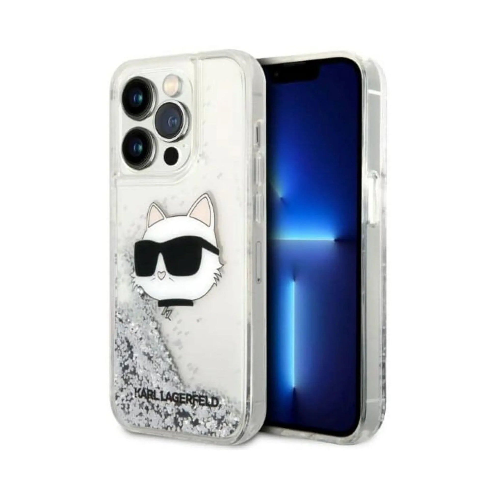Karl Lagerfeld Hülle Liquid Glitter NFT Choupette Head Silber – iPhone 14 Pro Max