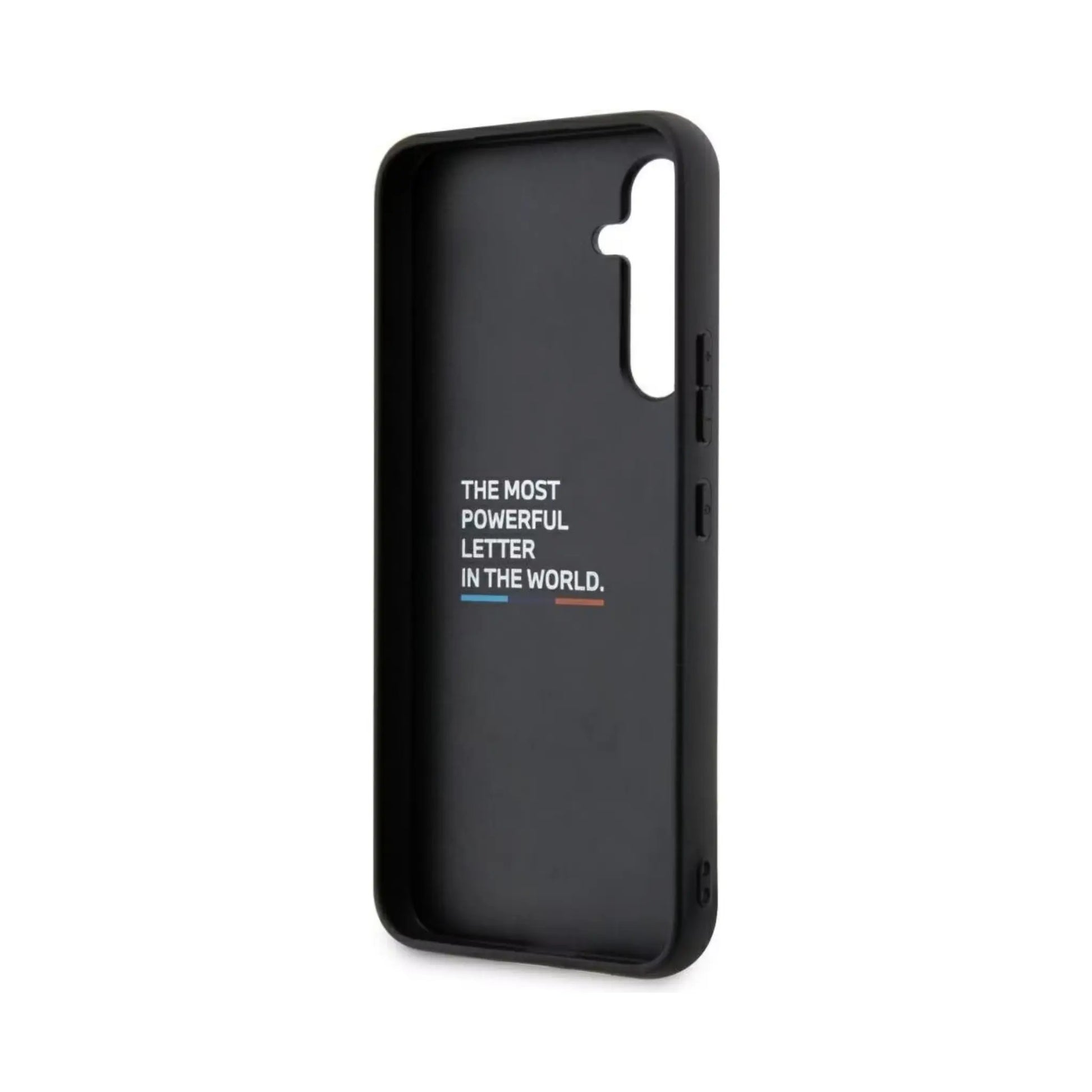 BMW Galaxy A54 5G Hülle, Schwarz – Leder Hot Stamp Tricolor