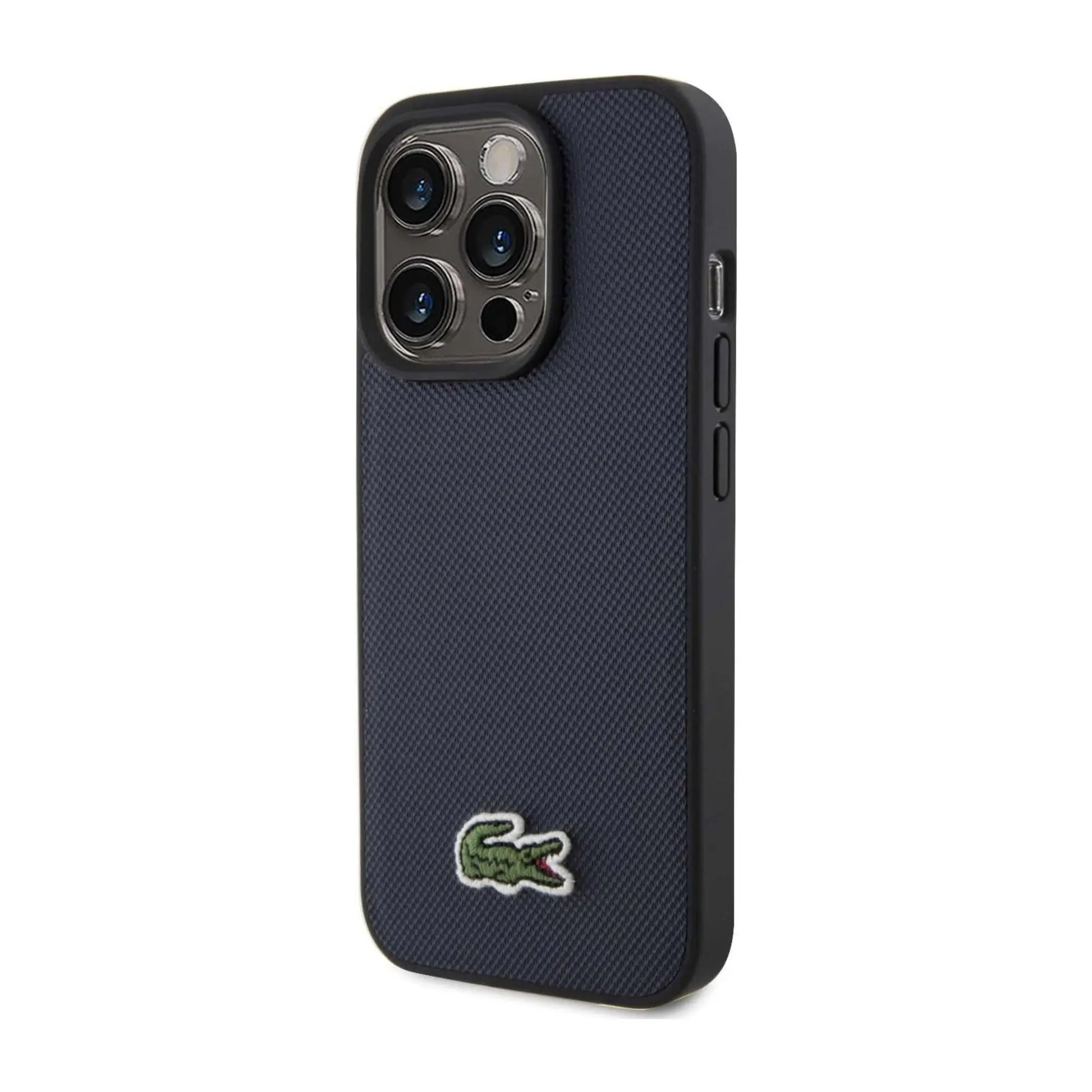 Lacoste iPhone 15 Pro Max Hülle, Navy – Iconic Petit Piqué Woven Logo MagSafe