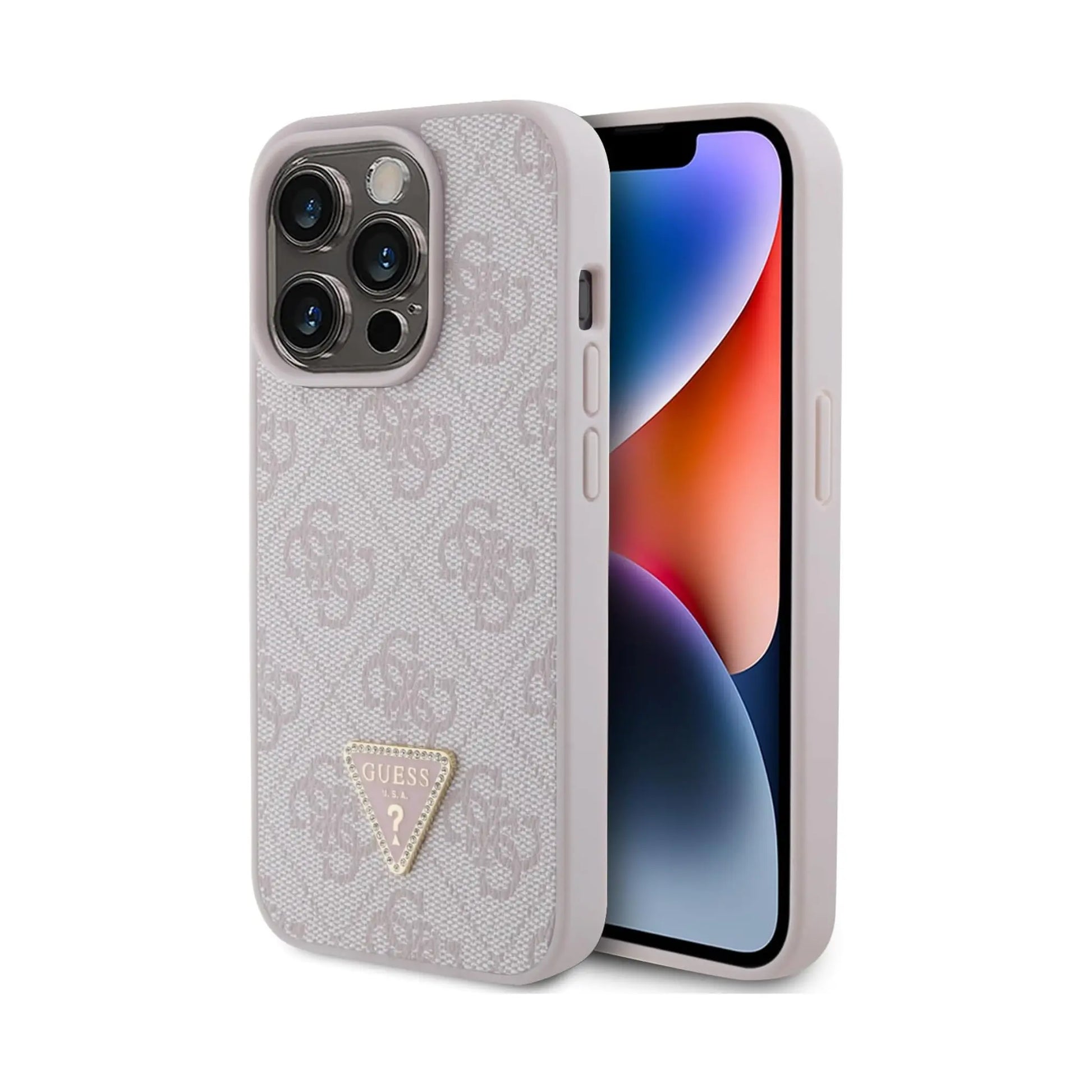 Guess 4G Triangle Rhinestone Case, Pink – iPhone 15 Pro Max