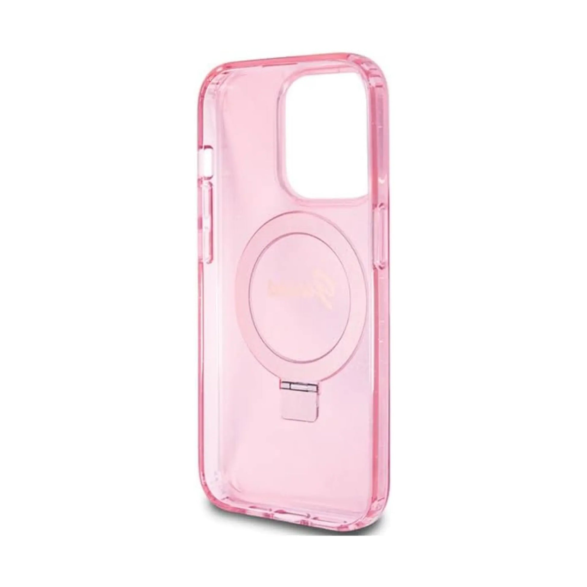 Guess Hülle Ring Stand Script Glitter MagSafe Rosa - iPhone 15 Pro