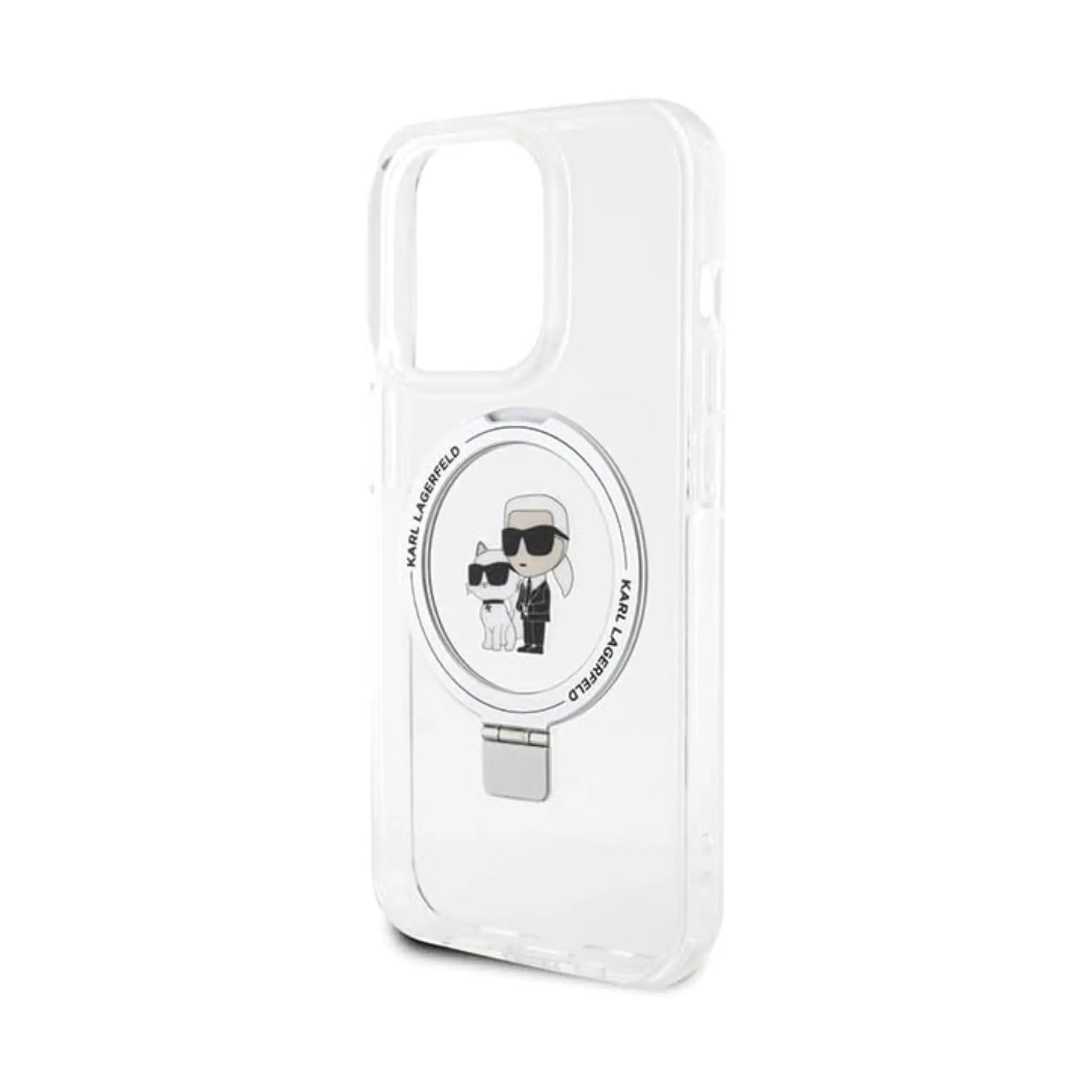 Karl Lagerfeld Hülle Ring Stand Karl & Choupette MagSafe Weiß – iPhone 14 Pro