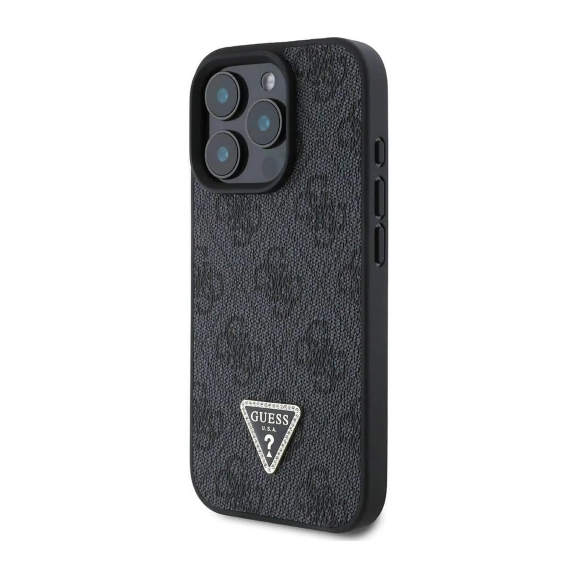Guess 4G Strass Hülle mit Gurt – iPhone 16 Pro, Schwarz