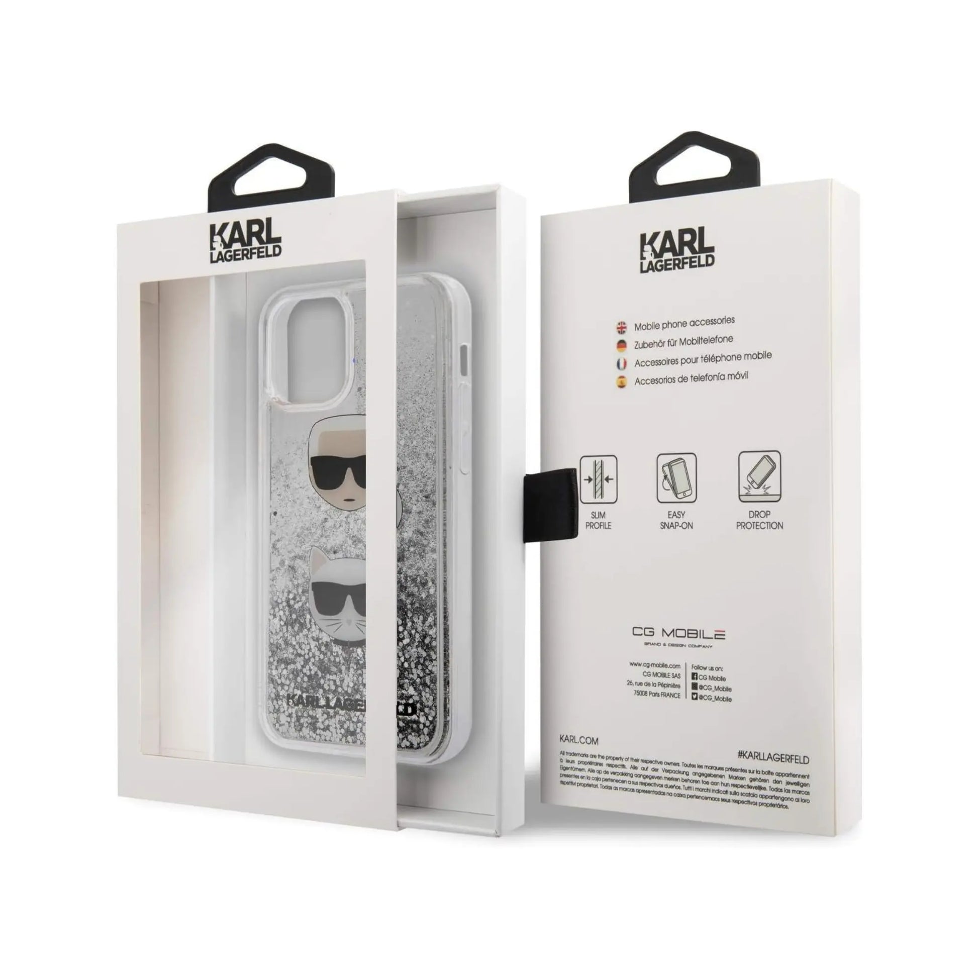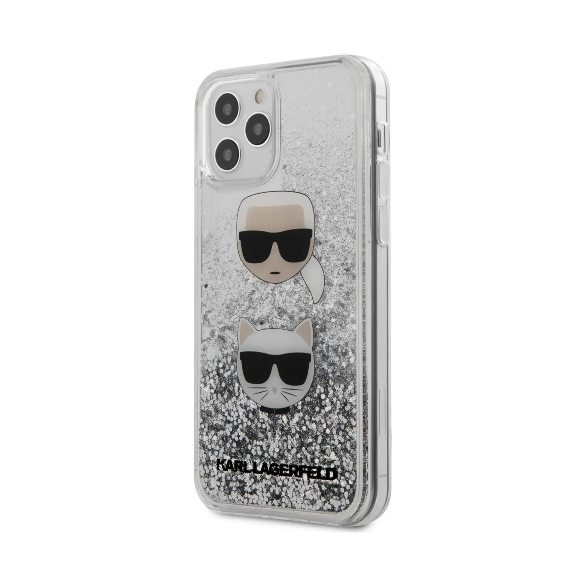 Karl Lagerfeld Hülle KLHCP12MKCGLSL Liquid Glitter Karl & Choupette Silber – iPhone 12/12 Pro